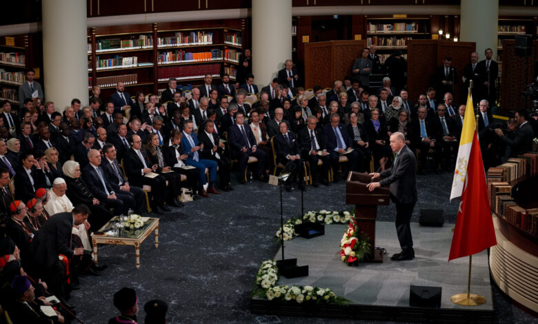 Cumhurbaşkanı Erdoğan, Papa 14. Leo’nun ziyaretinin, bölgesel ve küresel ölçekte son derece kritik bir döneme denk geldiğini belirterek, insanlığın yön arayışının hızlandığı, belirsizliklerin arttığı, Asya’dan Afrika’ya, Latin Amerika’dan Doğu Avrupa’ya gerilimlerin tırmandığı bir süreçte bu buluşmanın tüm insanlık için hayırlı olmasını diledi.