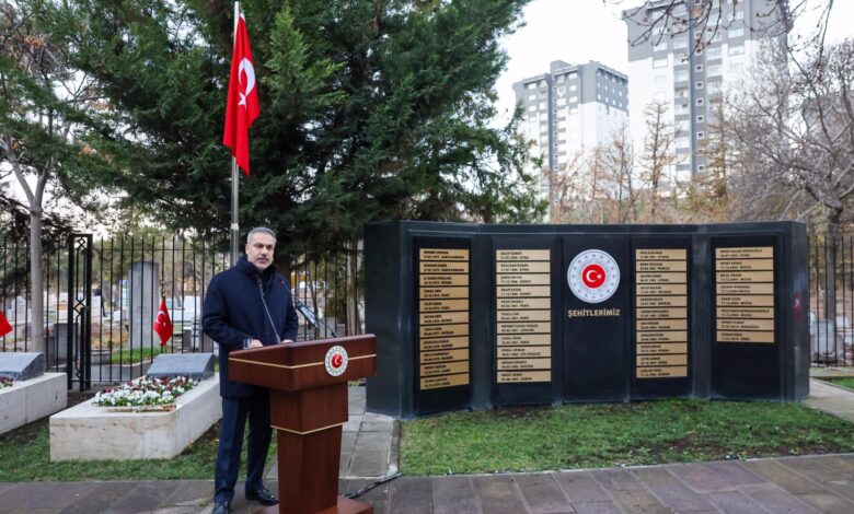 Dışişleri Bakanı Hakan Fidan, Ankara’da düzenlenen 16’ncı Büyükelçiler Konferansı’nın resmi açılış töreni öncesinde Cebeci Asri Mezarlığı’nda bulunan Dışişleri Şehitliği’ni ziyaret etti.