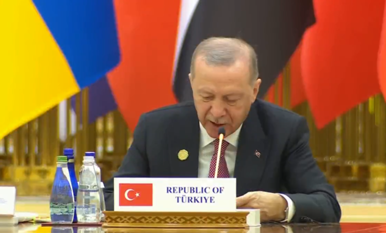 Dünyada artan çatışmalar ve kırılganlıklara dikkat çeken Erdoğan, güven ve barışın tesisi için uluslararası iş birliğinin kaçınılmaz olduğunu belirtti. Türkiye’nin komşularıyla iyi ilişkiler kurarak bölgede bir barış ve güvenlik kuşağı oluşturmak için çaba gösterdiğini aktardı. Rusya-Ukrayna savaşının sona ermesi için diplomatik girişimlere destek vermeye hazır olduklarını da dile getirdi.